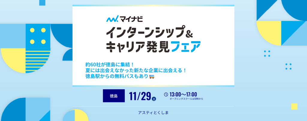 【11/29(土)開催】インターンシップ&キャリア発見フェア inアスティとくしま