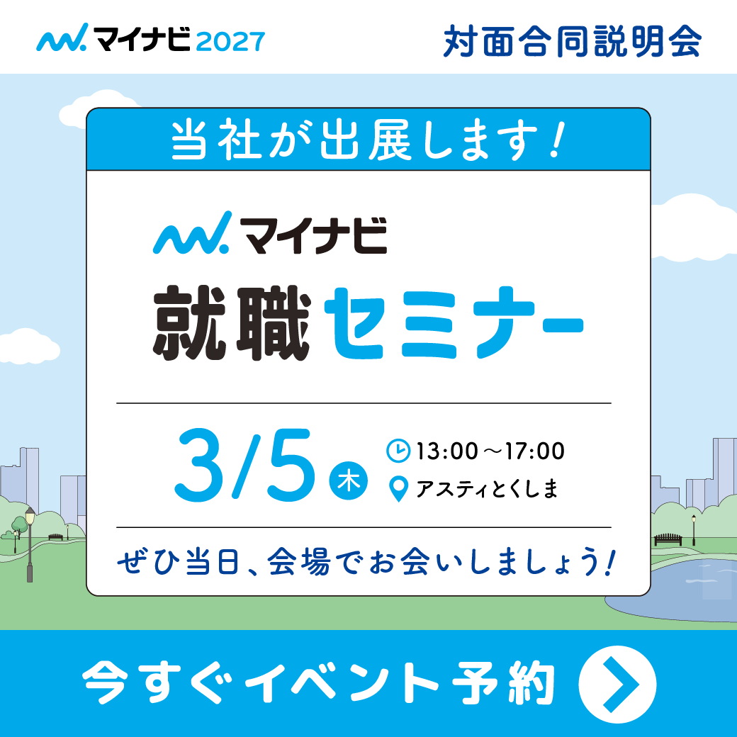 当社は、3月5日開催のマイナビ2027主催「就職セミナー 徳島会場」に出展します。